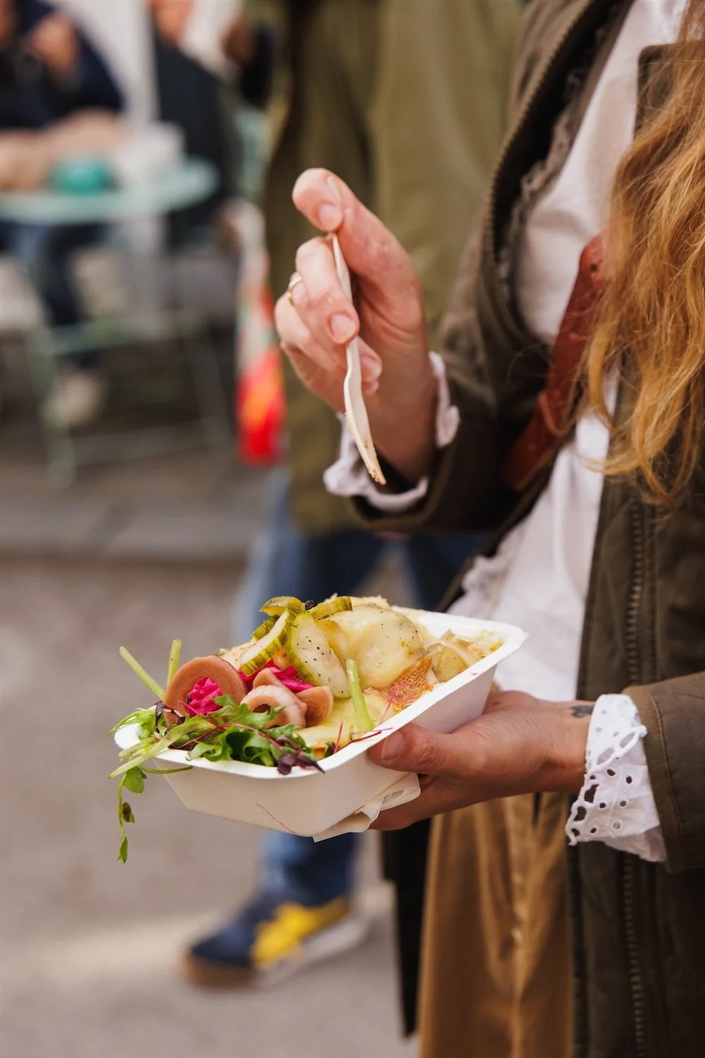 The morning after we arrived in England, we headed out bright and early, first stopping at the farmer’s market. Overwhelmed with the bounty and taking in all the new sights, sounds, tastes, and feelings of a new place - I didn’t know where to begin. I wandered around aimlessly until I spotted a stand, which now in my memory feels as if a bright beacon of light was shining down on it as if I was being directly guided to it. That light came in the form of potatoes, cream and cheese. The sign read “Tartiflette” and I suddenly knew where to start. Warm melty cheese wraps around tender potatoes, heavy cream and little salty bites of crisp lardons. To cut through the richness there’s pickles and a simple green salad on the side. A few bites of this and suddenly everything came into focus, grounding me to this new place. This moment meant so much to me that I couldn’t help but share it with our group, serving as the focal point for our final dinner together.